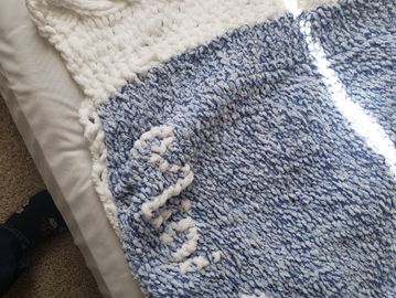 If you have a pattern in mind and colors, I can knit a custom baby blanket for the little one!